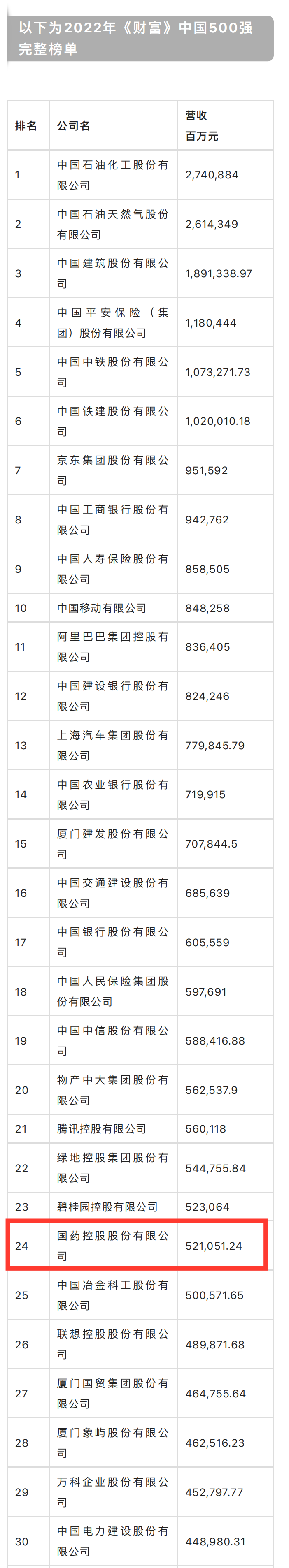 7月12日,财富Plus APP发布2022年《财富》中国500强排行榜,乐鱼(中国)一站式服务官方网站控股股份有限公司稳居2022年《财富》中国500强医药企业领衔位置,位列《财富》中国500强第24名,同时也是入榜医药企业中营收、利润最高的企业。