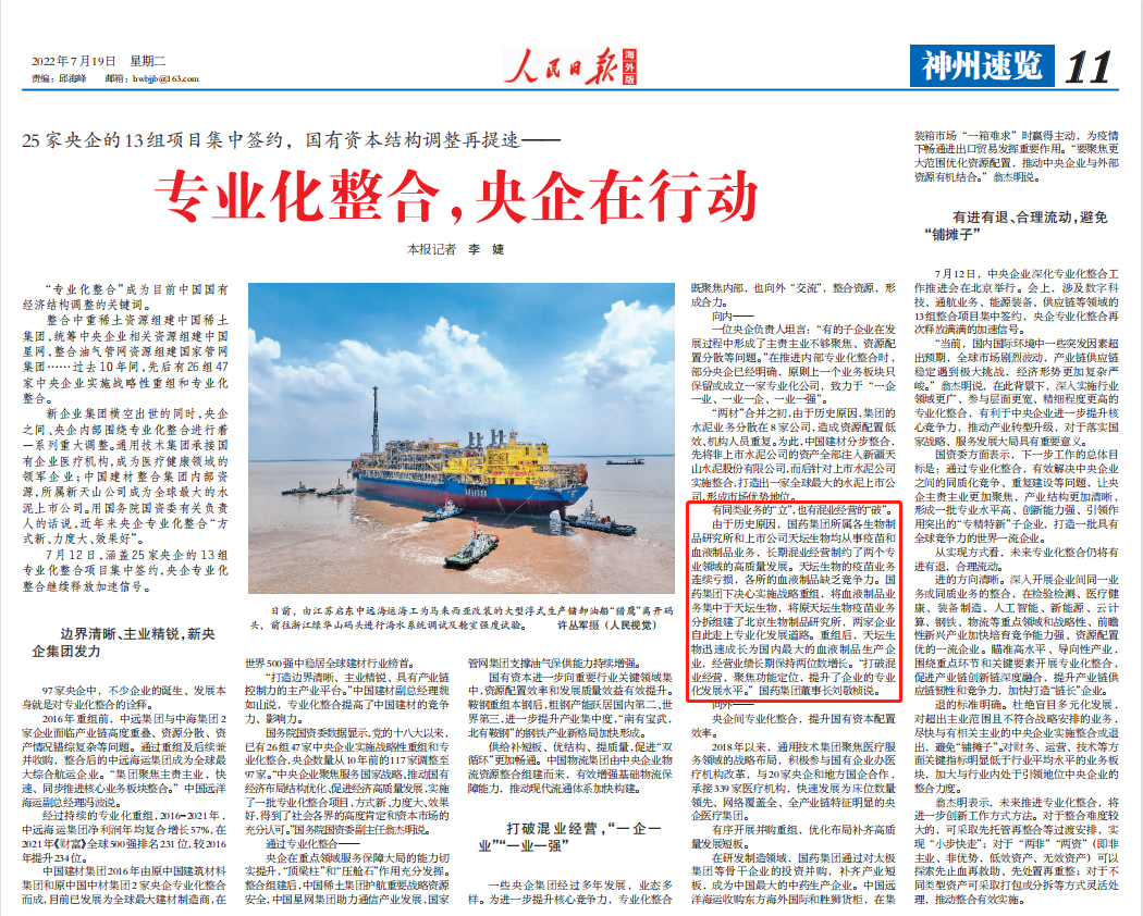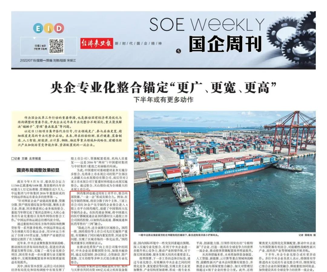 7月12日,国资委召开中央企业深化专业化整合工作推进会,总结中央企业在实施行业领域更广、参与层面更宽、精细程度更高的专业化整合的做法,交流在服务国家战略、优化国有经济布局、促进实现高质量发展等方面的经验,并部署推动下一步专业化整合工作,乐鱼·体育作为6家改革成效显著的企业之一作发言交流,多家媒体对此进行了报道。