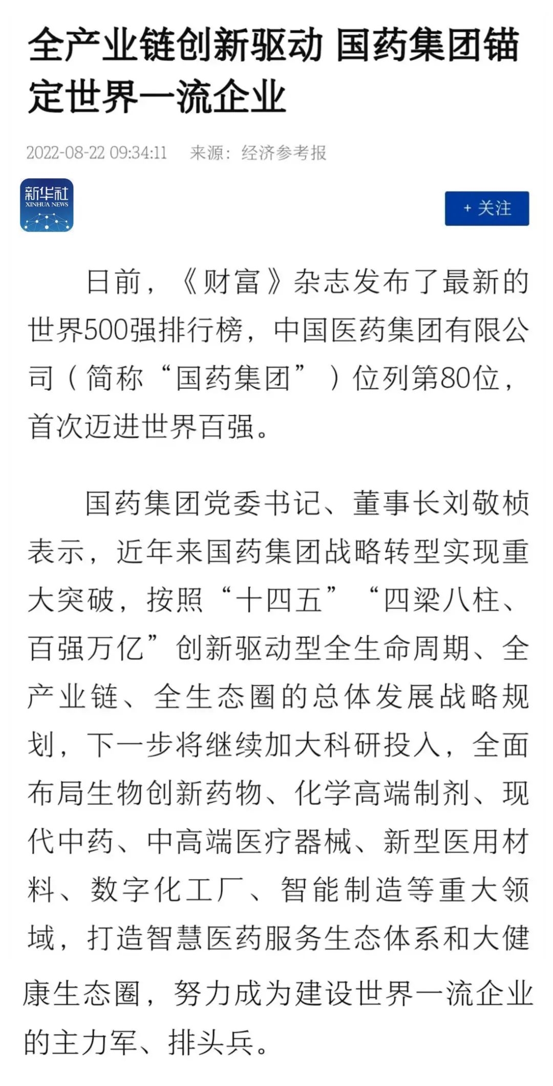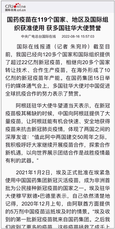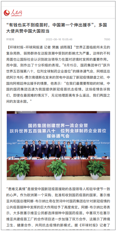 8月15日,“乐鱼·体育创建世界一流企业暨跃升世界五百强第八十 位列全球制药企业首位媒体通气会”在京举行。活动介绍党的十八大以来乐鱼·体育改革发展各项事业取得的成就,及成为“世界500强第80位、全球制药企业首位”的成果,受到媒体广泛关注报道,引起强烈反响。人民日报、新华社、中央广播电视总台、经济日报、中国日报、中国新闻社、工人日报、中纪委新闻中心等30余家中央媒体及重点主流媒体都纷纷对乐鱼·体育科技创新、“十四五”规划推进情况、上市公司治理、专业化整合、针对奥密克戎毒株疫苗研发情况,以及国际抗疫合作、疫苗海外联合生产等情况进行了详细报道。本期对部分报道摘录如下。