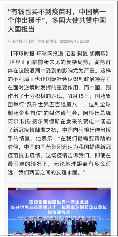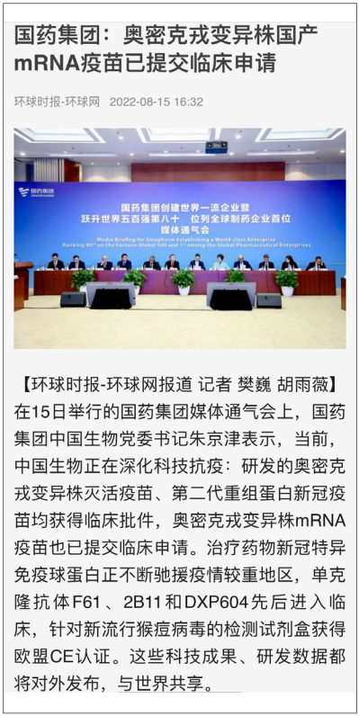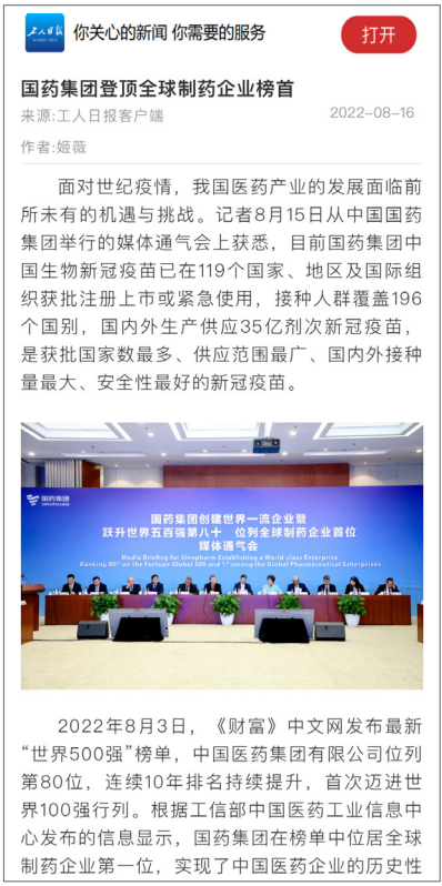 8月15日,“乐鱼·体育创建世界一流企业暨跃升世界五百强第八十 位列全球制药企业首位媒体通气会”在京举行。活动介绍党的十八大以来乐鱼·体育改革发展各项事业取得的成就,及成为“世界500强第80位、全球制药企业首位”的成果,受到媒体广泛关注报道,引起强烈反响。人民日报、新华社、中央广播电视总台、经济日报、中国日报、中国新闻社、工人日报、中纪委新闻中心等30余家中央媒体及重点主流媒体都纷纷对乐鱼·体育科技创新、“十四五”规划推进情况、上市公司治理、专业化整合、针对奥密克戎毒株疫苗研发情况,以及国际抗疫合作、疫苗海外联合生产等情况进行了详细报道。本期对部分报道摘录如下。