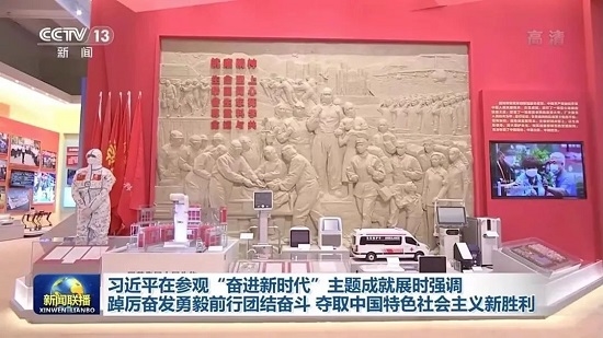 在党的二十大即将召开之际,中共中央总书记、国家主席、中央军委主席习近平27日前往北京展览馆,参观“奋进新时代”主题成就展。他强调,党的十八大以来,党中央团结带领全党全国各族人民,攻克了许多长期没有解决的难题,办成了许多事关长远的大事要事,经受住了来自政治、经济、意识形态、自然界等方面的风险挑战考验,党和国家事业取得历史性成就、发生历史性变革,为实现中华民族伟大复兴提供了更为完善的制度保证、更为坚实的物质基础、更为主动的精神力量。要广泛宣传10年来的战略性举措、变革性实践、突破性进展、标志性成果,宣传10年来的伟大变革在党史、新中国史、改革开放史、社会主义发展史、中华民族发展史上具有的里程碑意义,激励全党全国各族人民坚定历史自信、增强历史主动,踔厉奋发、勇毅前行、团结奋斗,谱写全面建设社会主义现代化国家新篇章,夺取中国特色社会主义新胜利。