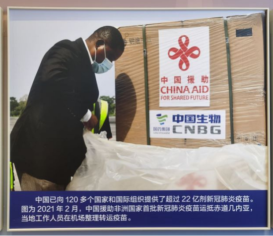 中央综合展区第十一单元“外交工作”,展出了多幅乐鱼·体育推进抗击新冠肺炎疫情国际合作,执行海外援助任务等助力构建人类命运共同体的图片。