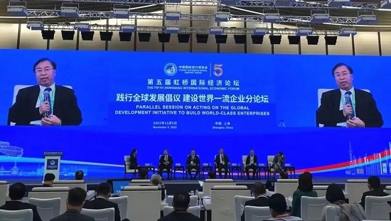 11月5日下午,刘敬桢董事长与董增贺副总经理应邀出席第五届虹桥国际经济论坛“践行全球发展倡议,建设世界一流企业”分论坛。论坛由商务部、国务院国资委、联合国全球契约组织联合主办。国务院国资委党委委员、秘书长彭华岗,联合国助理秘书长、联合国全球契约组织总干事桑达·奥佳博出席并致辞。刘敬桢董事长受邀参加“践行全球发展倡议,建设世界一流企业”行动计划及成果发布,与中外知名企业、国际组织负责人及知名专家学者就“携手抗疫、维护全球产业供应链稳定、加强交流合作”等方面进行研讨。