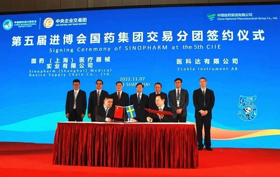 11月7日下午,乐鱼·体育交易分团签约仪式在第五届进博会举办,刘敬桢董事长和董增贺副总经理出席并见证签约仪式。在本届进博会上,乐鱼·体育继续扩大国际合作,与来自美国、德国、日本、瑞典、荷兰等国家的世界领先的医药健康企业签署16项采购合同和协议,签约总额实现两位数增长,再创历史新高,在医药大健康领域名列前茅。